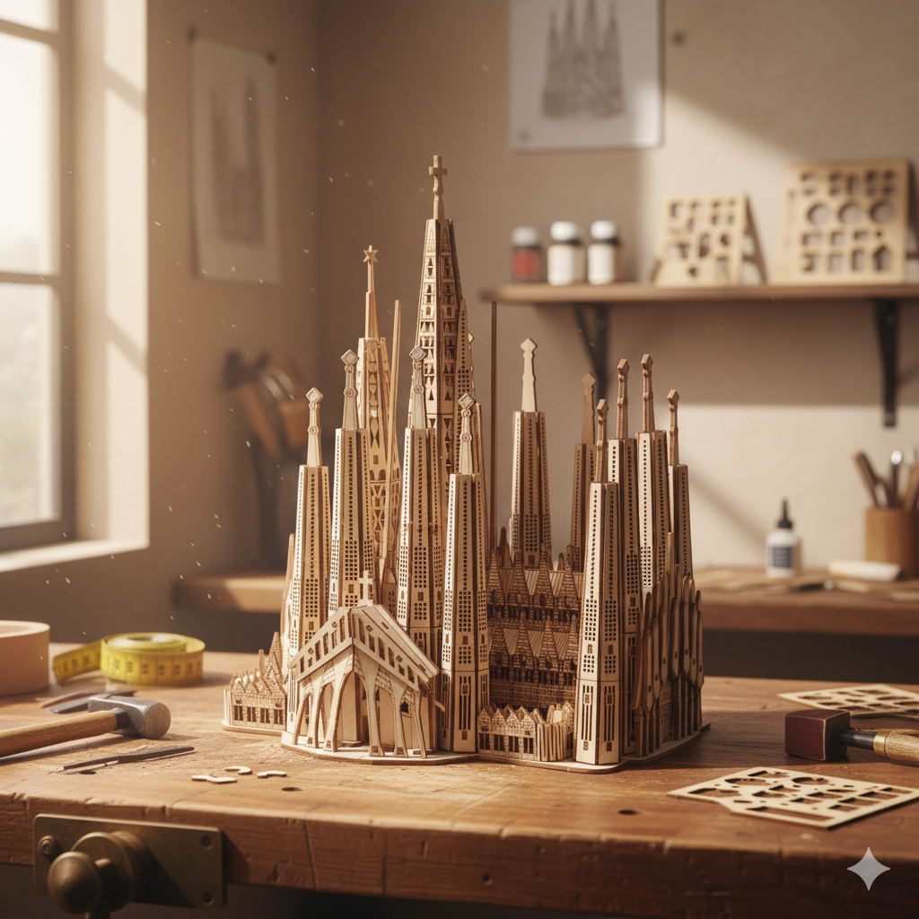 Una volta finito, questo modello diventerà un meraviglioso elemento decorativo della casa, aggiungendo raffinatezza e un tocco storico agli interni. La Sagrada Familia nella versione in legno può suscitare discussioni e ispirare. Un regalo ideale per bambini e adulti, che sviluppa la creatività, la precisione e arricchisce la visione del mondo dell'architettura.